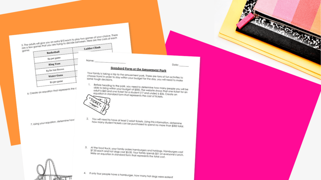 This application will take your students through budgeting a day at an amusement park by making their own choices and determining how they will spend their money. They will need to write and solve linear equations in two variables using standard form.