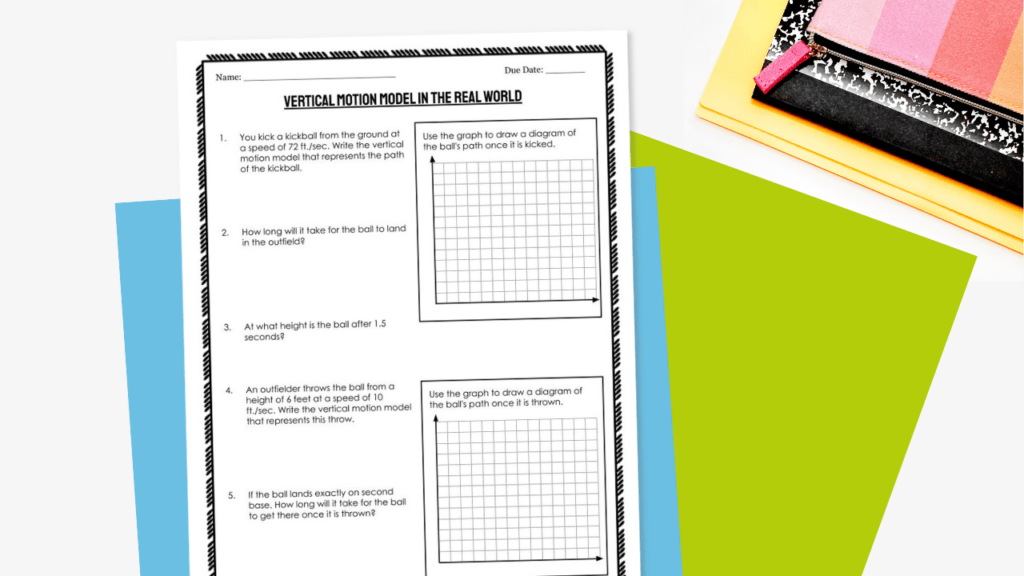 This vertical motion model application is designed to engage your students while challenging them to think outside of the box. Your students will factor out a GCF, factor trinomials when A is not 1, and find zeros of quadratics.