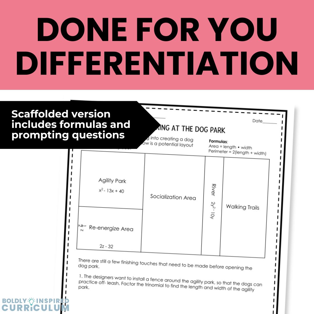 Forget the stress of finding ways to differentiate in your Algebra 1 classroom! This real world factoring trinomials activity has two versions that will challenge and engage all of your students.
