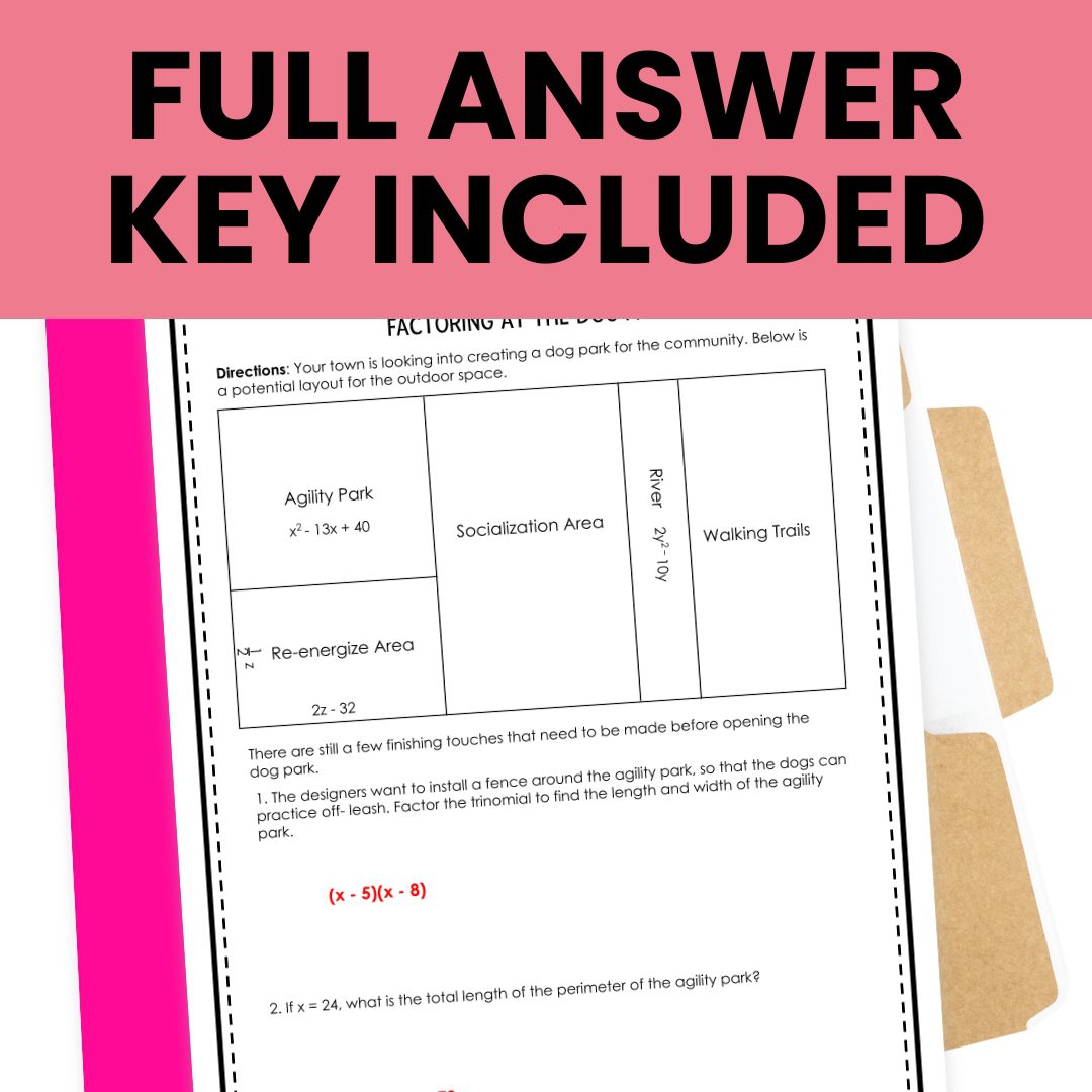 Real life applications are an essential part of any curriculum, but can often intimidate students. This factoring trinomials activity offers scaffolding to support students as they learn to solve word problems and navigate the problem solving process.