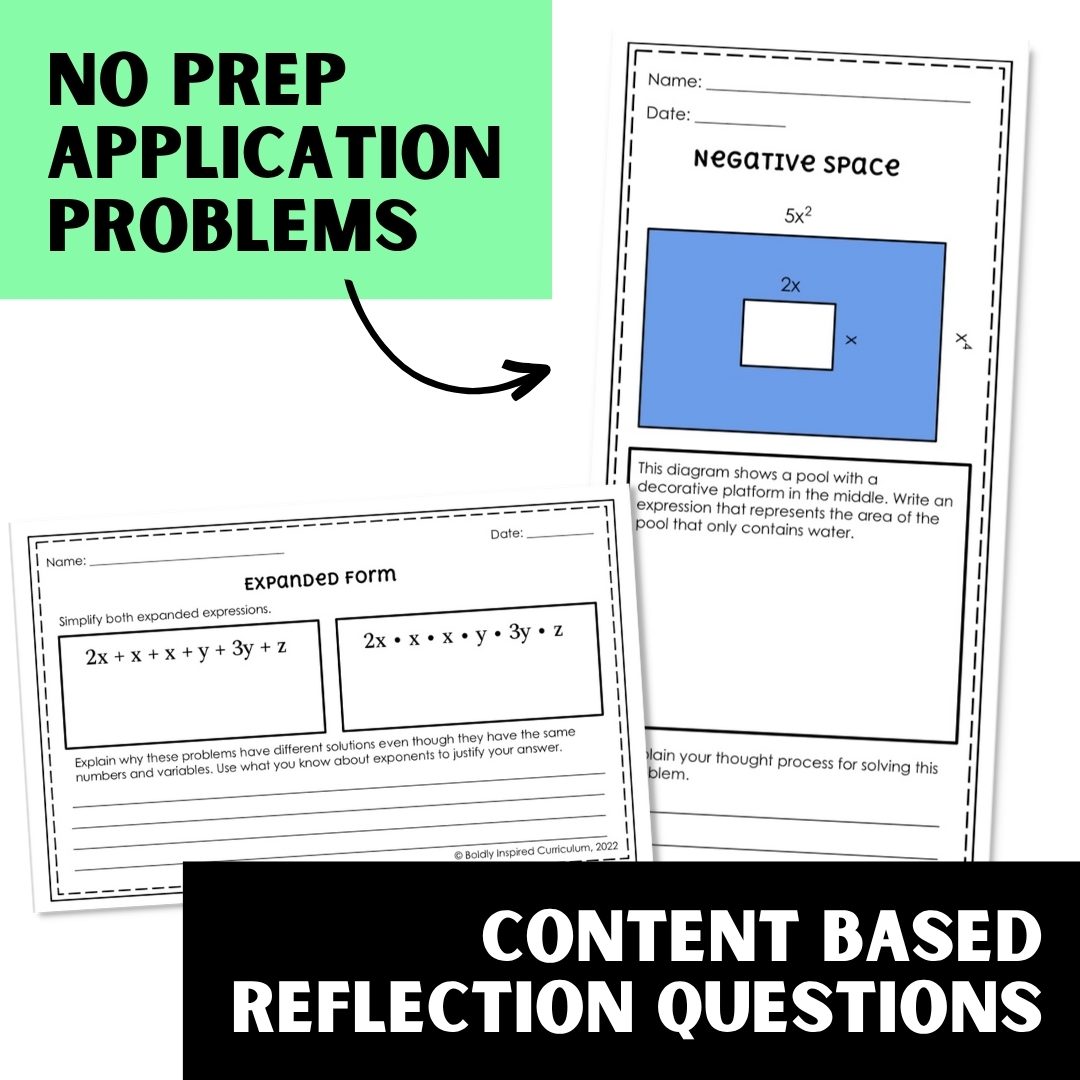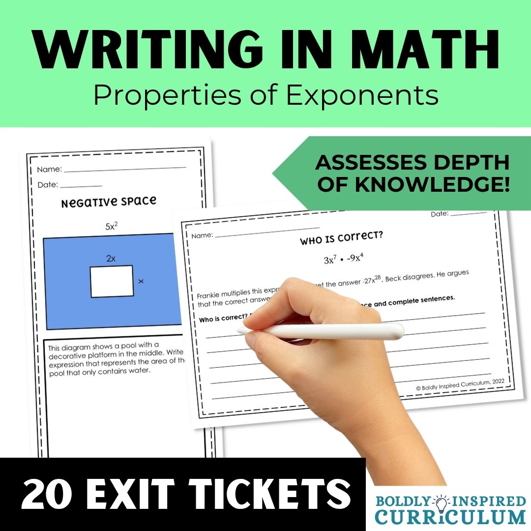 All writing prompts are content-aligned and can be used as exit tickets, math journal prompts, or task cards for the exponent rules.