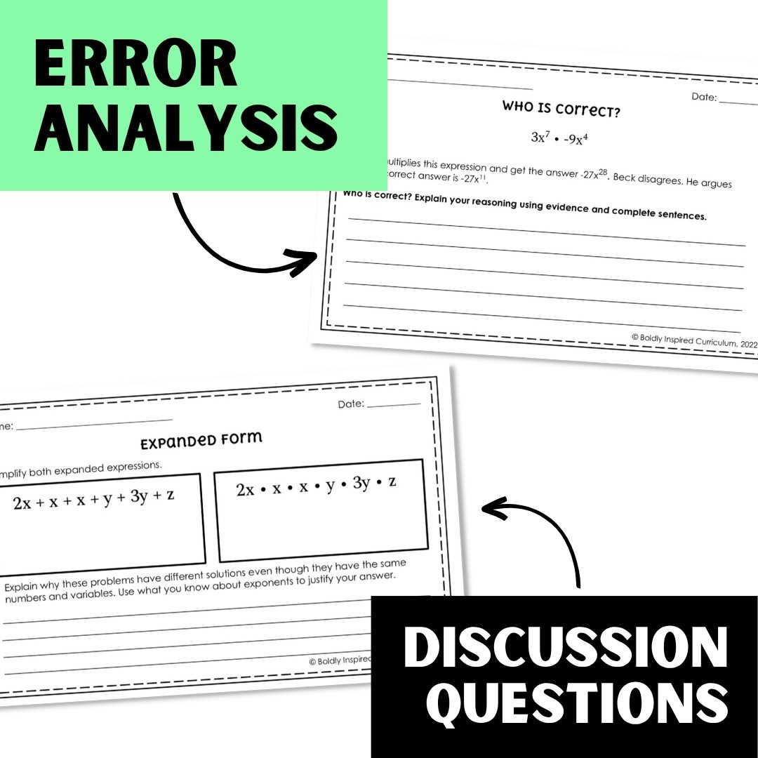Do you want your students to start thinking critically and articulating their thoughts about the laws of exponents? This set of Algebra 1 exit tickets and warm ups are the perfect no-prep, grab-and-go activity to supplement your current Algebra 1 curriculum.
