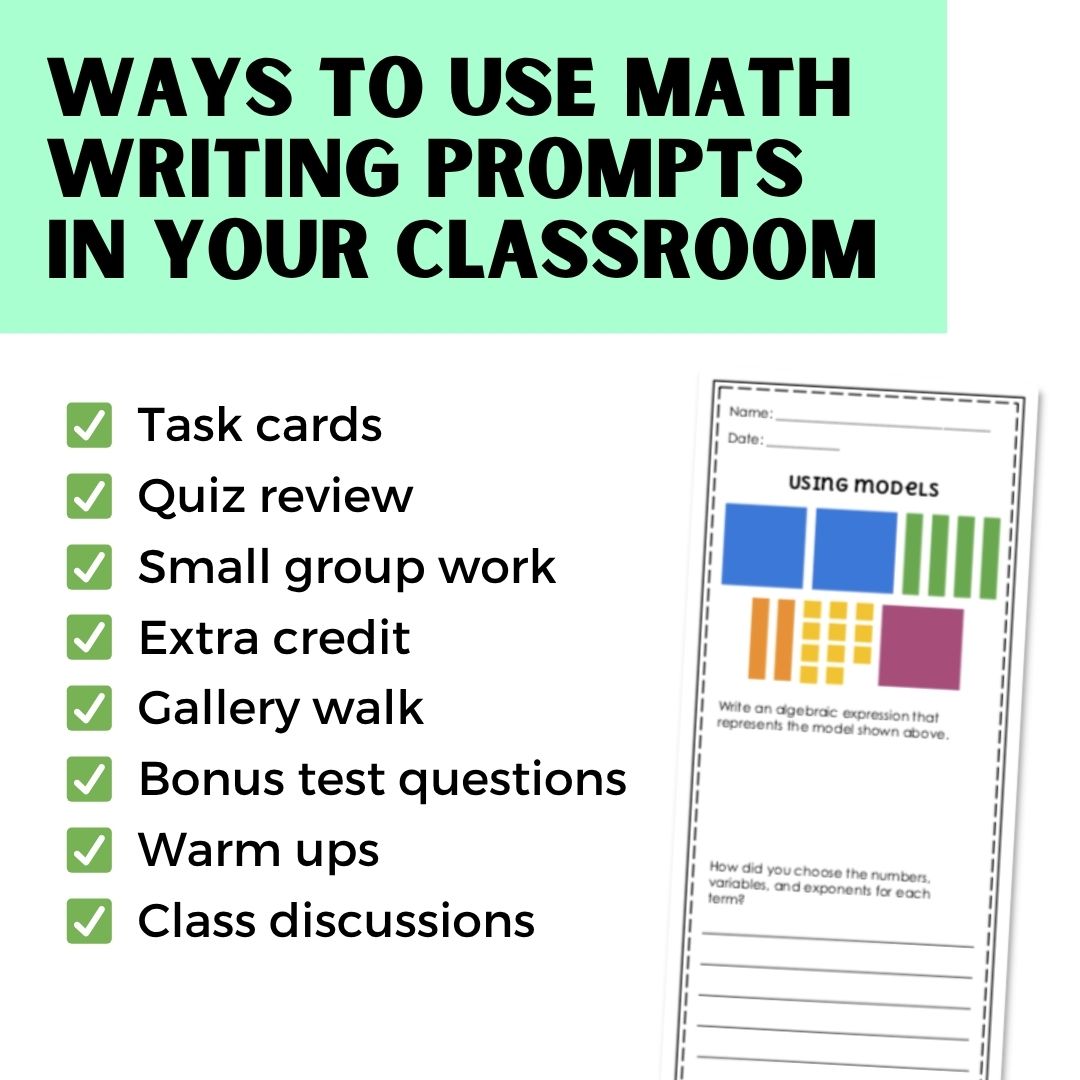 Looking for more writing prompts? Get the Algebra 1 Warm Up Bundle and save 20%!