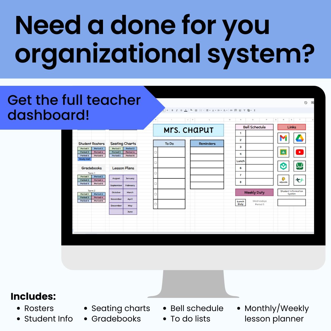 Want to take your organization to the next level? Check out the all-in-one teacher dashboard to house all of your class lists, seating charts, lesson plans, and more!