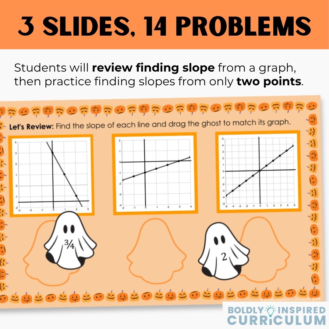 Engage your kinesthetic Algebra 1 students with this Halloween themed slope from two points activity! This digital or printable card sort can be used for independent practice, group work, or a formative assessment.