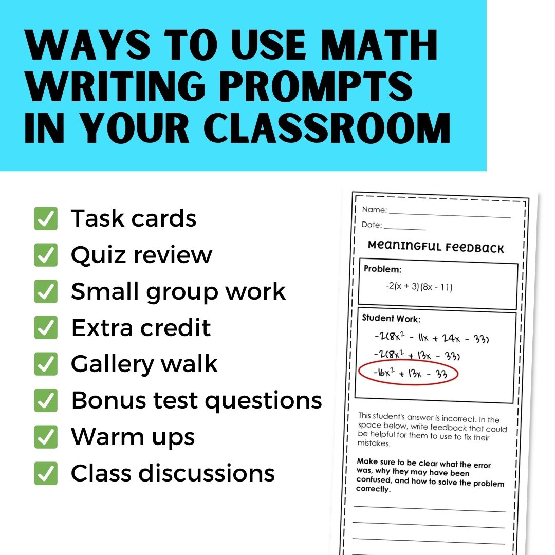 Looking for more writing prompts? Get the Algebra 1 Warm Up Bundle and save 20%!