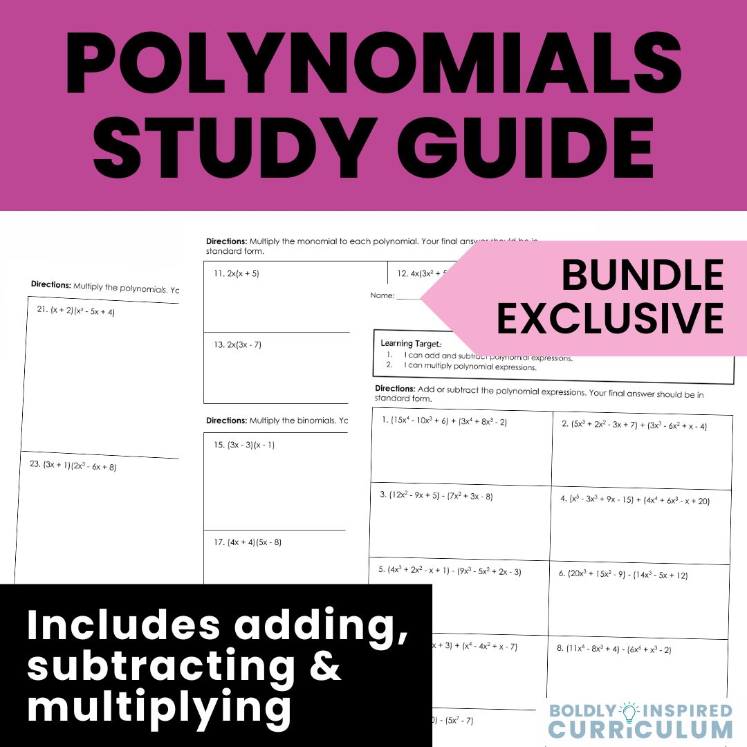 ⭐️ Small groups: The students can work in pairs or small groups to complete the polynomials worksheet. They can also work with a partner to complete the guided example problems and check their work as a whole class.