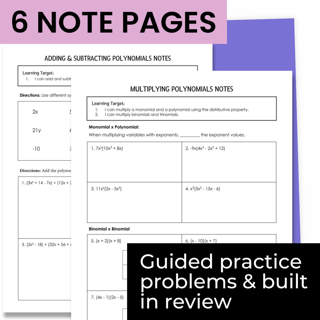 Polynomial Operations Guided Notes and Worksheet Bundle for Algebra 1
