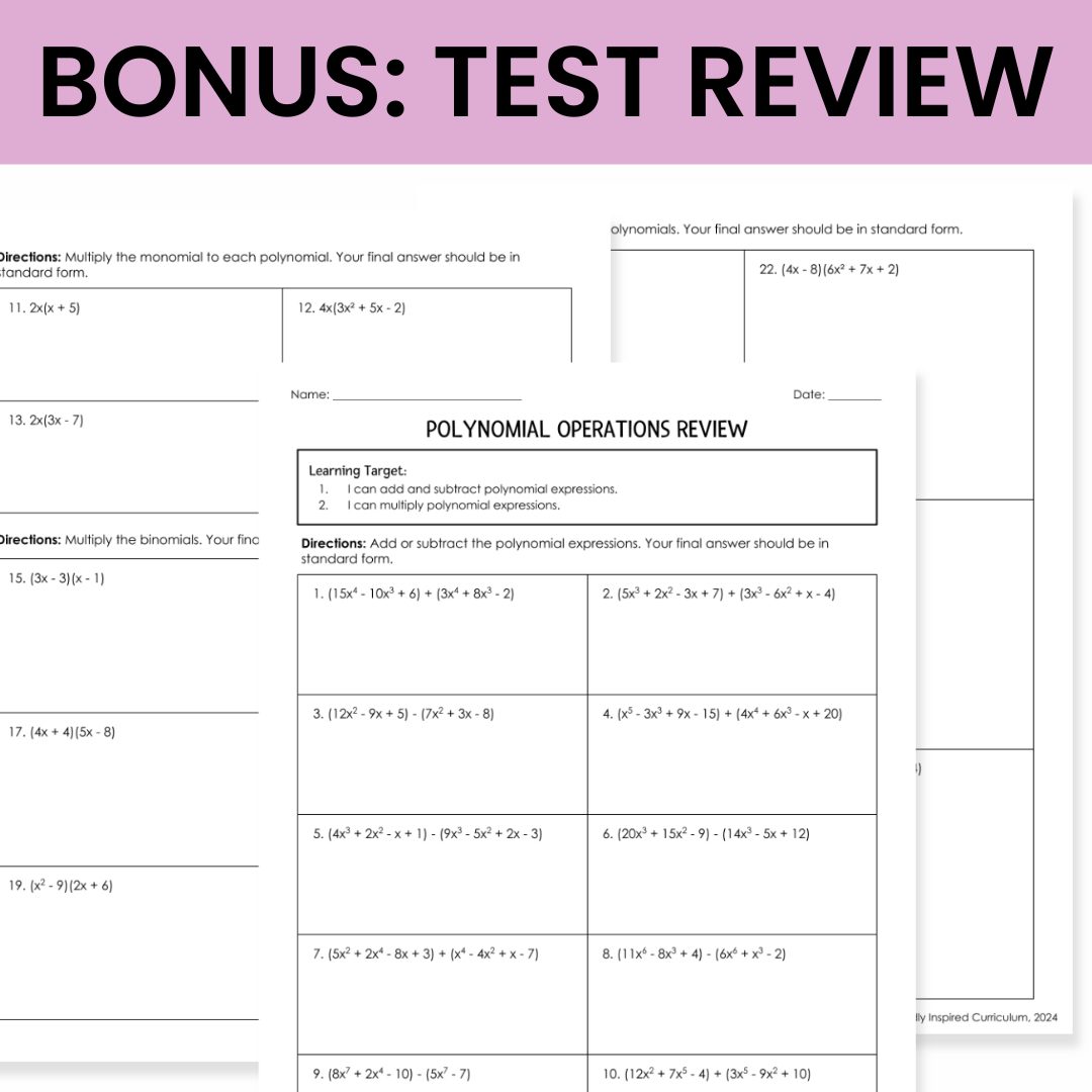 Exclusive BONUS: Differentiated Multiplying Polynomials Mixed Review Worksheet