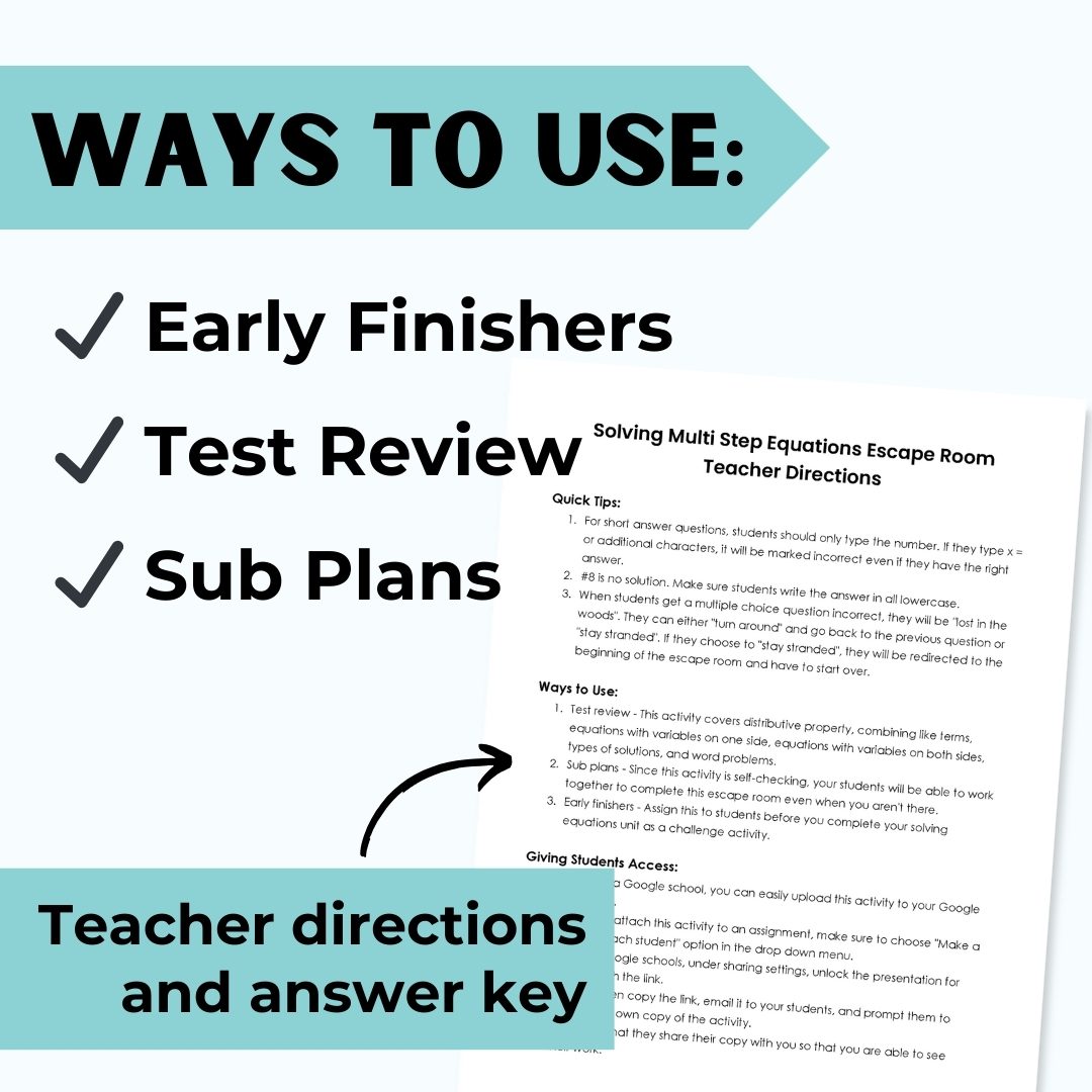 Test Review: This escape room covers all elements of your solving equations unit and makes the perfect test review activity.