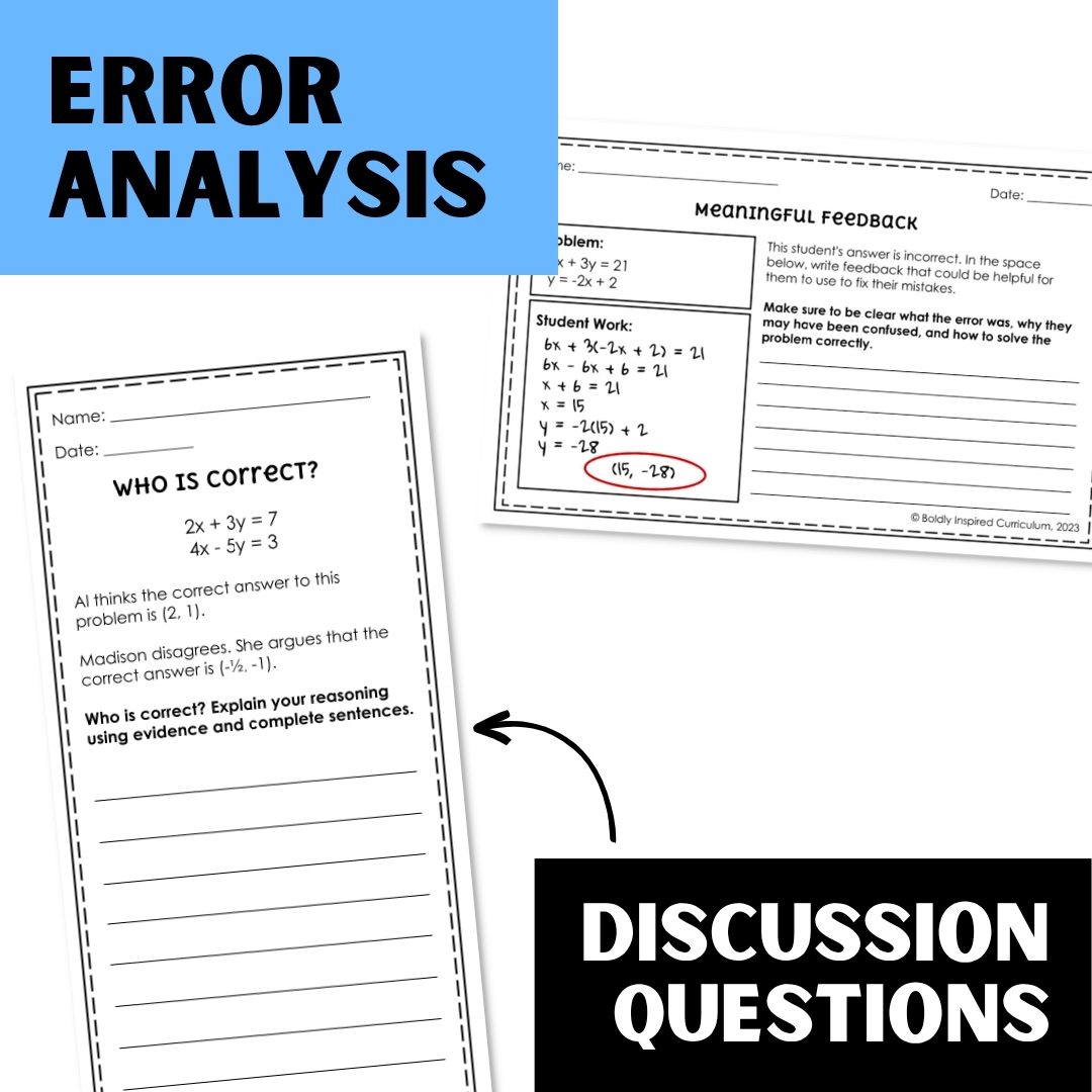 These systems of linear equations writing prompts are the perfect no prep, grab and go activity for Algebra 1 students. All of the prompts are content aligned and can be used as warm ups, exit tickets, or math journals.