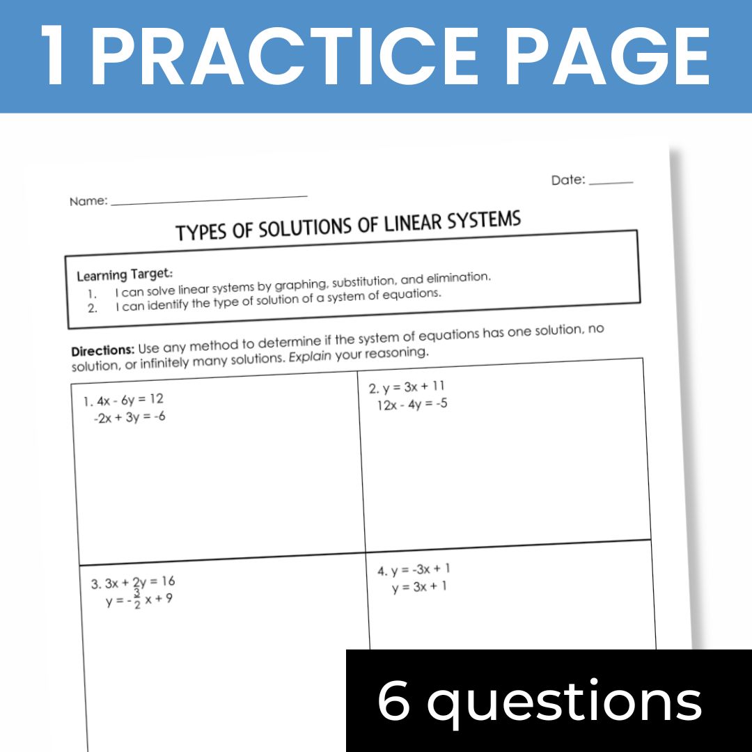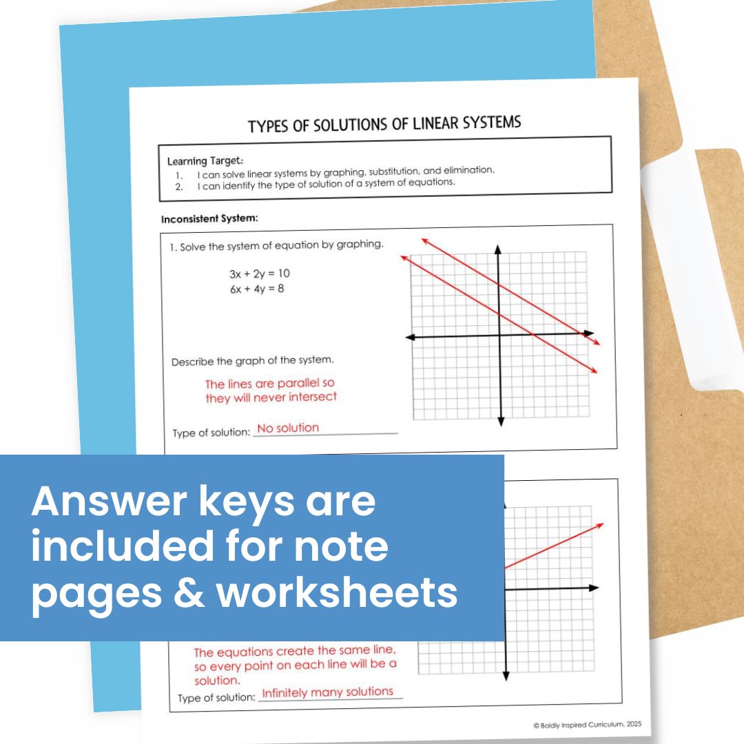 Save 20% when you bundle this resource! Check out Systems of Equations Unit Guided Notes Bundle that includes substitution, elimination, and special solutions of systems of equations.