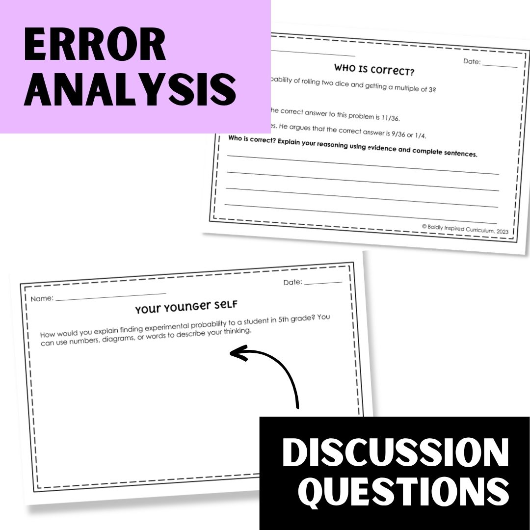 Get your Algebra 1 students thinking critically with these no prep writing prompts. Each problem is tailored specifically to experimental and theoretical probability. These math prompts are perfect for warm ups, exit tickets, or math journals.