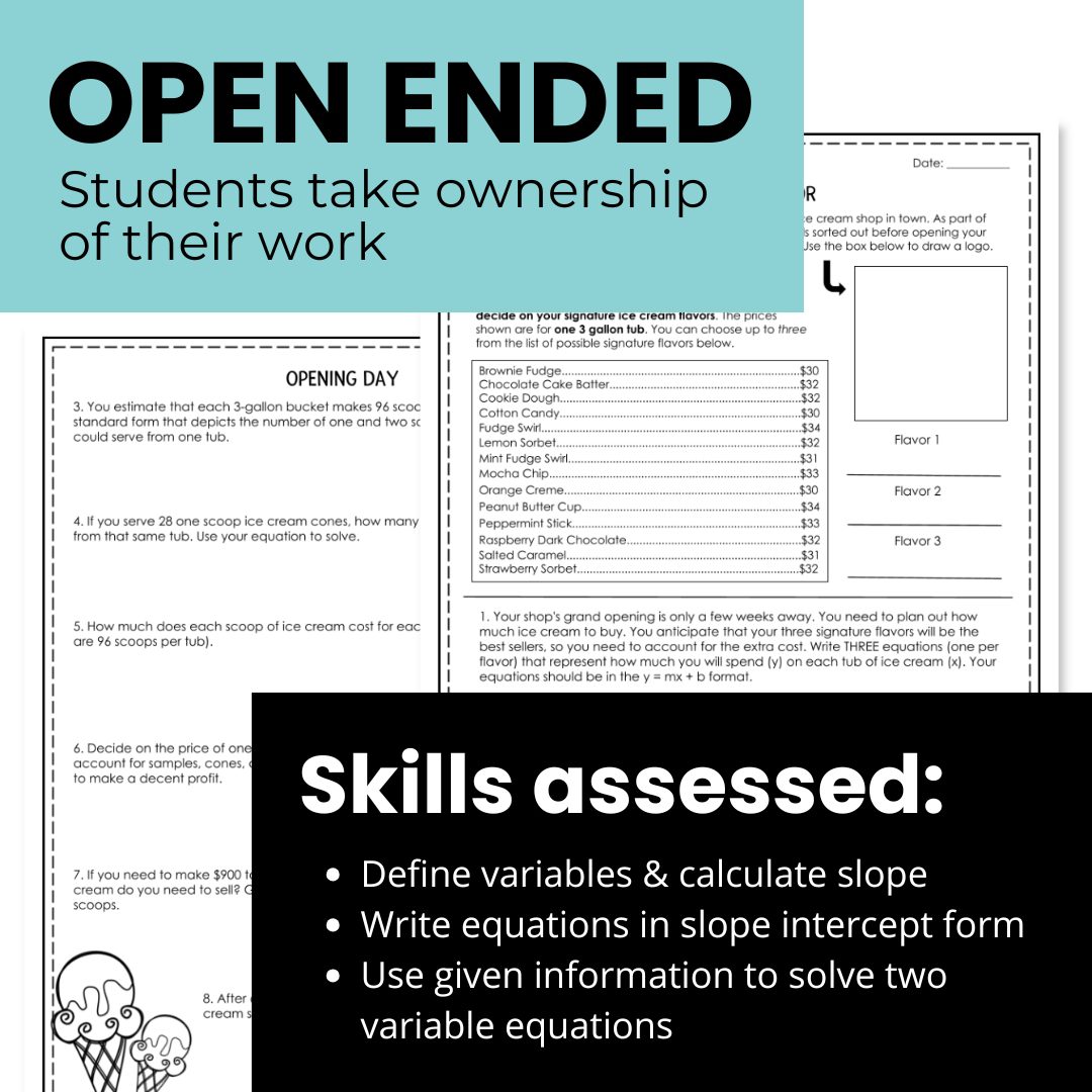 Your students will create and evaluate linear equations to build their business.