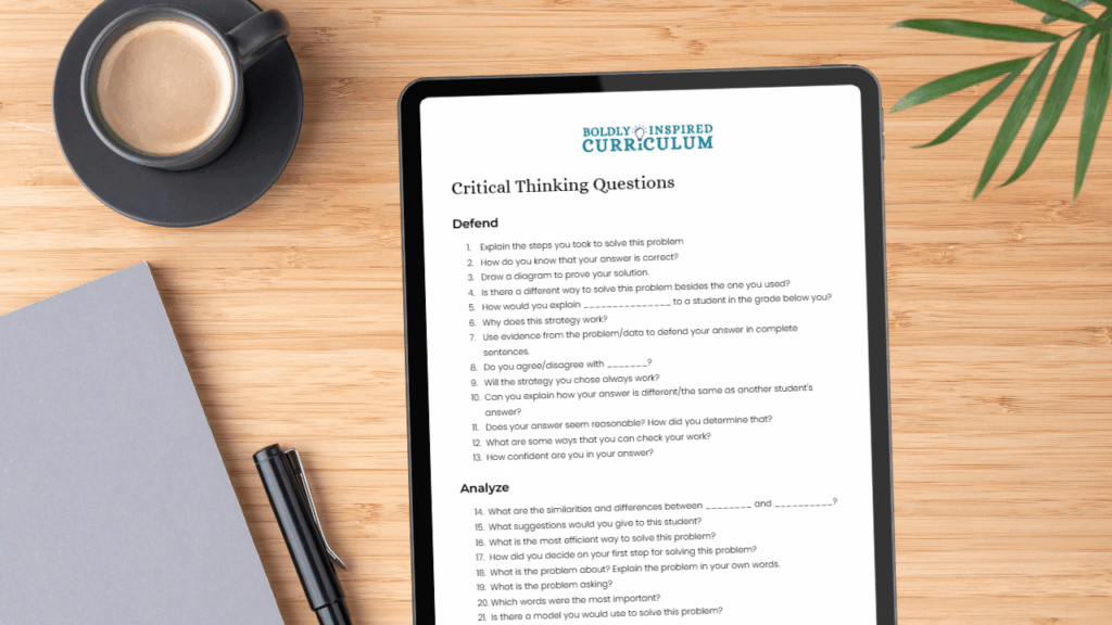 Customizable critical thinking questions that can be used for any grade level or math topic.